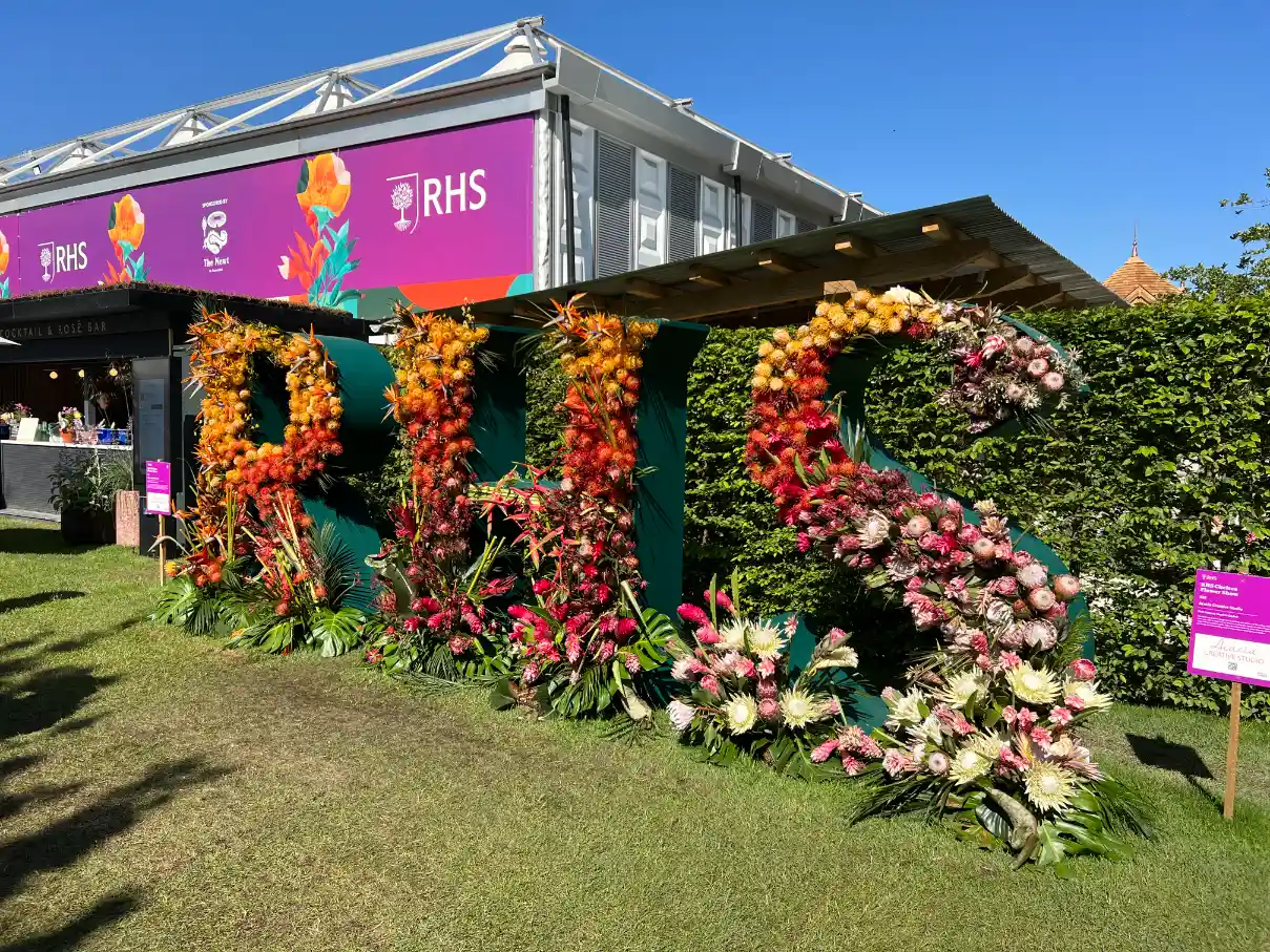 This year’s RHS Letters installation featured approximately 5,000 flowers, including unusual varieties of Protea and Heliconia, creating a vibrant ombré effect that became one of the most photographed spots at the show.