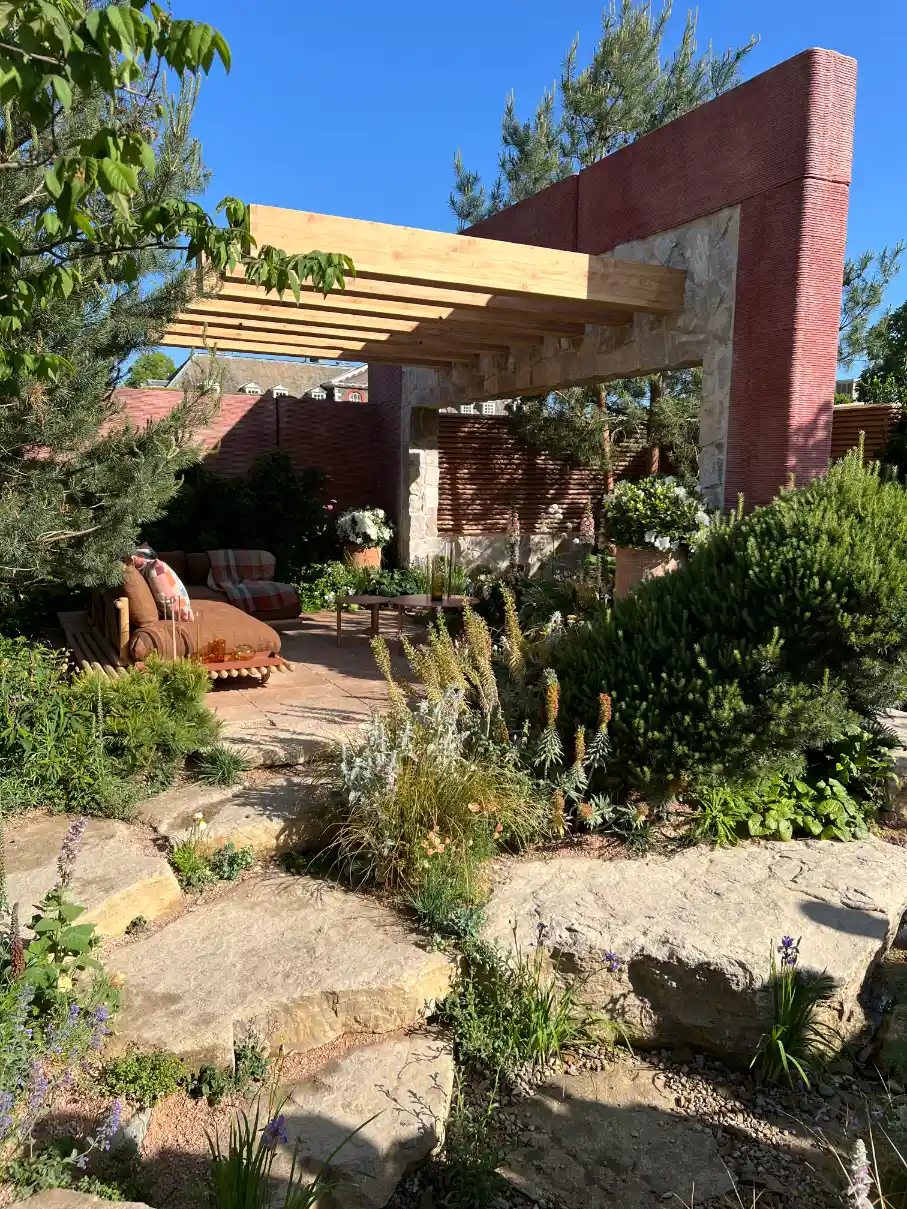 What particularly struck me about this year’s show was how many gardens addressed real-world challenges through beautiful, practical solutions. Matthew Butler and Josh Parker’s ‘Garden of the Future’ showcased innovative approaches to climate resilience, featuring a composting toilet producing biochar and a solar-powered irrigation system. The garden demonstrated how sustainability can be seamlessly integrated into design without sacrificing beauty.